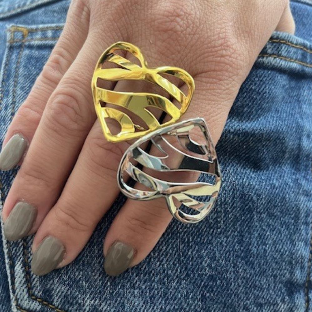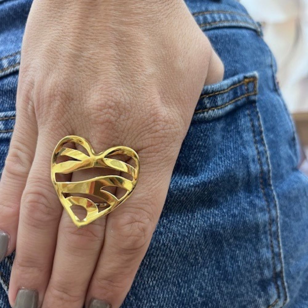 Δαχτυλίδι από ανοξείδωτο ατσάλι σε σχήμα καρδιάς και όψη ζεβρέ.